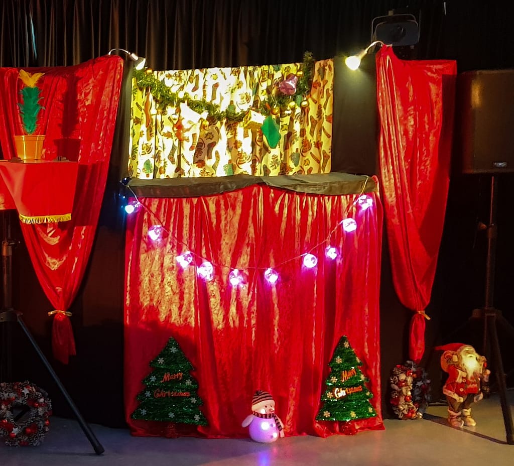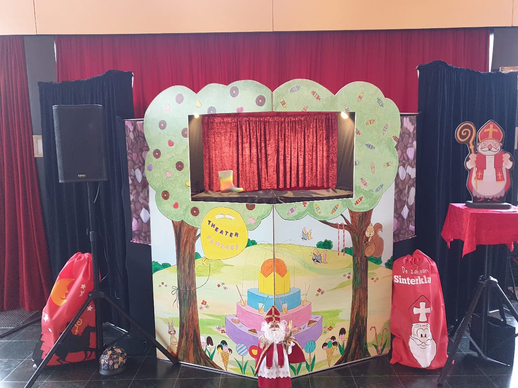 We beschikken over verschillende theaters die we mee kunnen nemen naar jullie school. Ze hebben verschillende afmetingen, van klein tot groot, en zijn daarom geschikt voor alle ruimtes die voorhanden zijn.